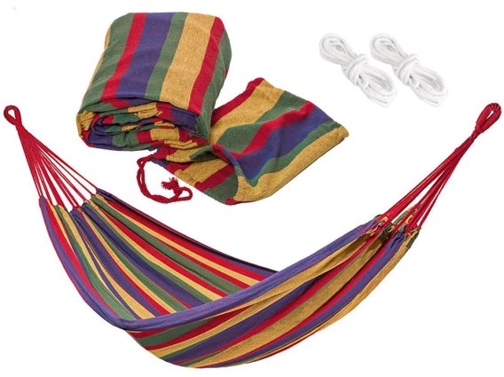 Wesoły, kolorowy wzór w pasy sprawia, że hamak wygląda ciekawie i będzie ozdobą każdego ogrodu, ale nie tylko!